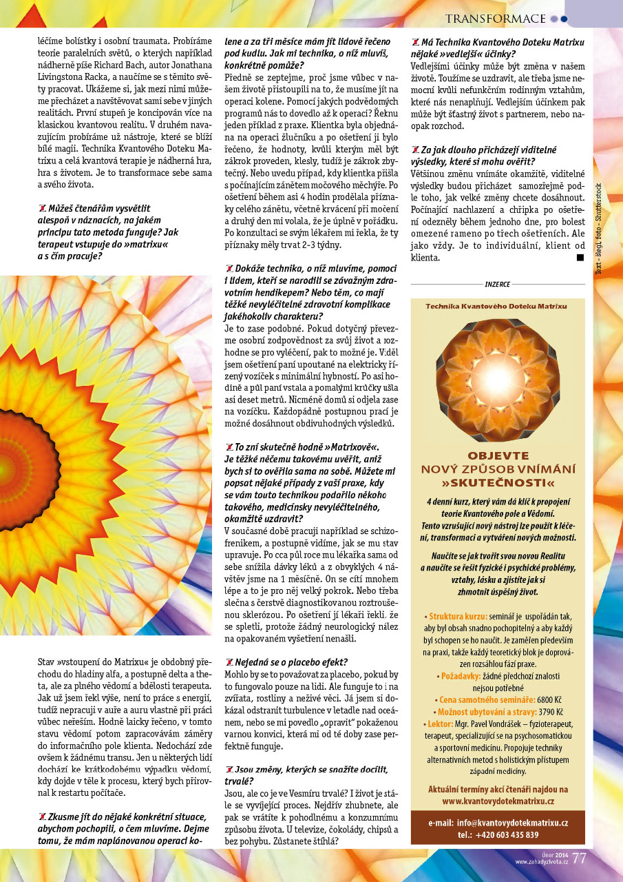 Rozhovor pro časopis Záhady života, který vyšel v únorovém čísle v roce 2014. Pokud chcete čitelnější verzi, klikněte přímo na jednotlivé obrázky.